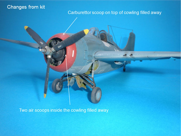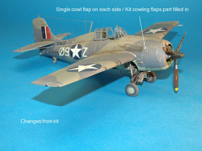 F4F-3 / F4F-4, Wildcat cockpit and wheel bay colours varied from aircraft to aircraft and lot depends on the production block and manufacturing company of the a/c in question. As is the case from time to time, my references also varied – I had to go with common sense and trust in what the experts write in the many books that I spend so much of my spare time in any given week poring over. Bronze green was painted above the floor and the fuel tank under the cockpit was light grey or black with an interior green supporting structure. The area below the floor was Interior Green. The inside of the engine cowling and main gear bay were Light Grey, as was the interior of the fuselage all the way back to the tail. Tri-colour aircraft would have had Insignia white wheel bays. All of this subject to change of course!