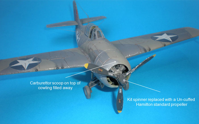 As the cowling is quite open, a large amount of the engine can be seen from the front behind the prop. I have noted that some modellers replace the push rods and add ignition harness to add detail. The engine paints up well if you only require OOB. You could cut the openings too give a thinned out look for the cowling flaps. All of the flight control surfaces and flaps are moulded closed.